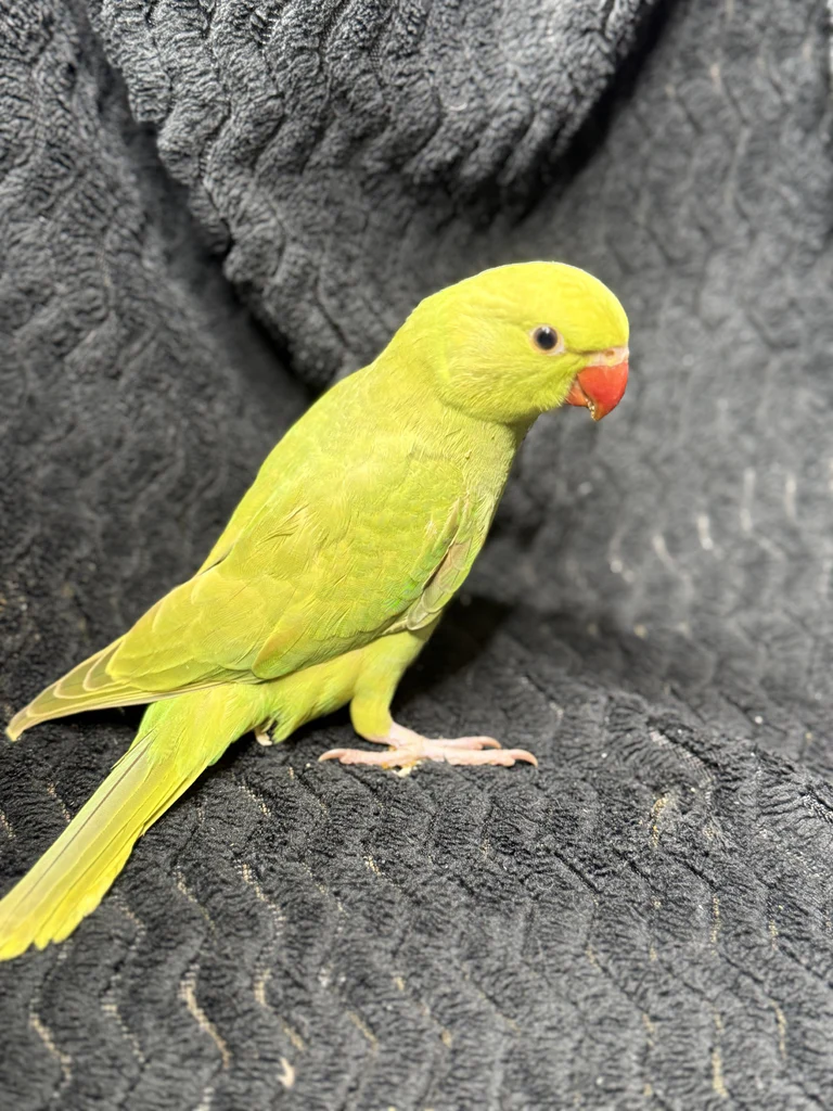 Our Indian Ringneck parrots are known for their stunning looks and vibrant colors, available in shades like yellow, blue, green, and albino. A standout feature of this species is the male’s elegant neck ring, which appears as they mature, making it easy to tell males and females apart.
